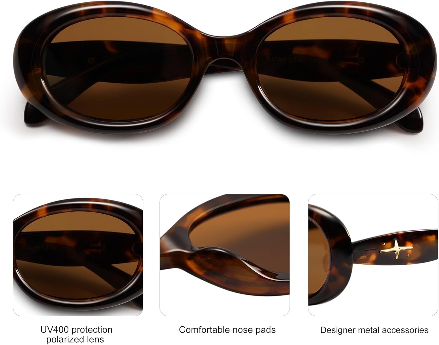 SOJOS Small Retro Oval Polarized Sunglasses for Women Men 90s Vintage Small Face UV400 Protection Tiny Sun Glasses SJ2286
