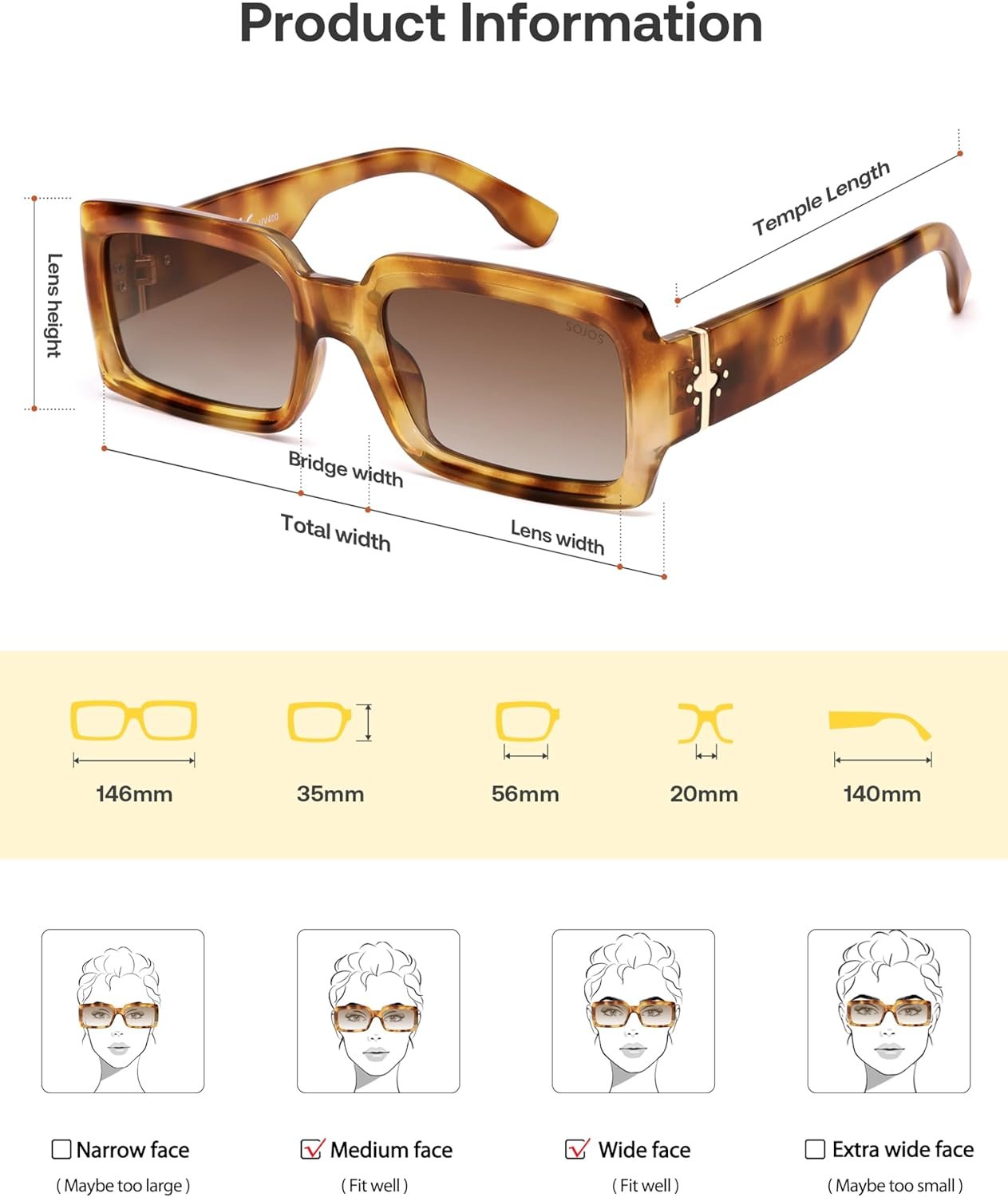 SOJOS Trendy Retro Rectangle Polarized Sunglasses Men 90s Vintage Square Womens Sunnies Shades SJ2388