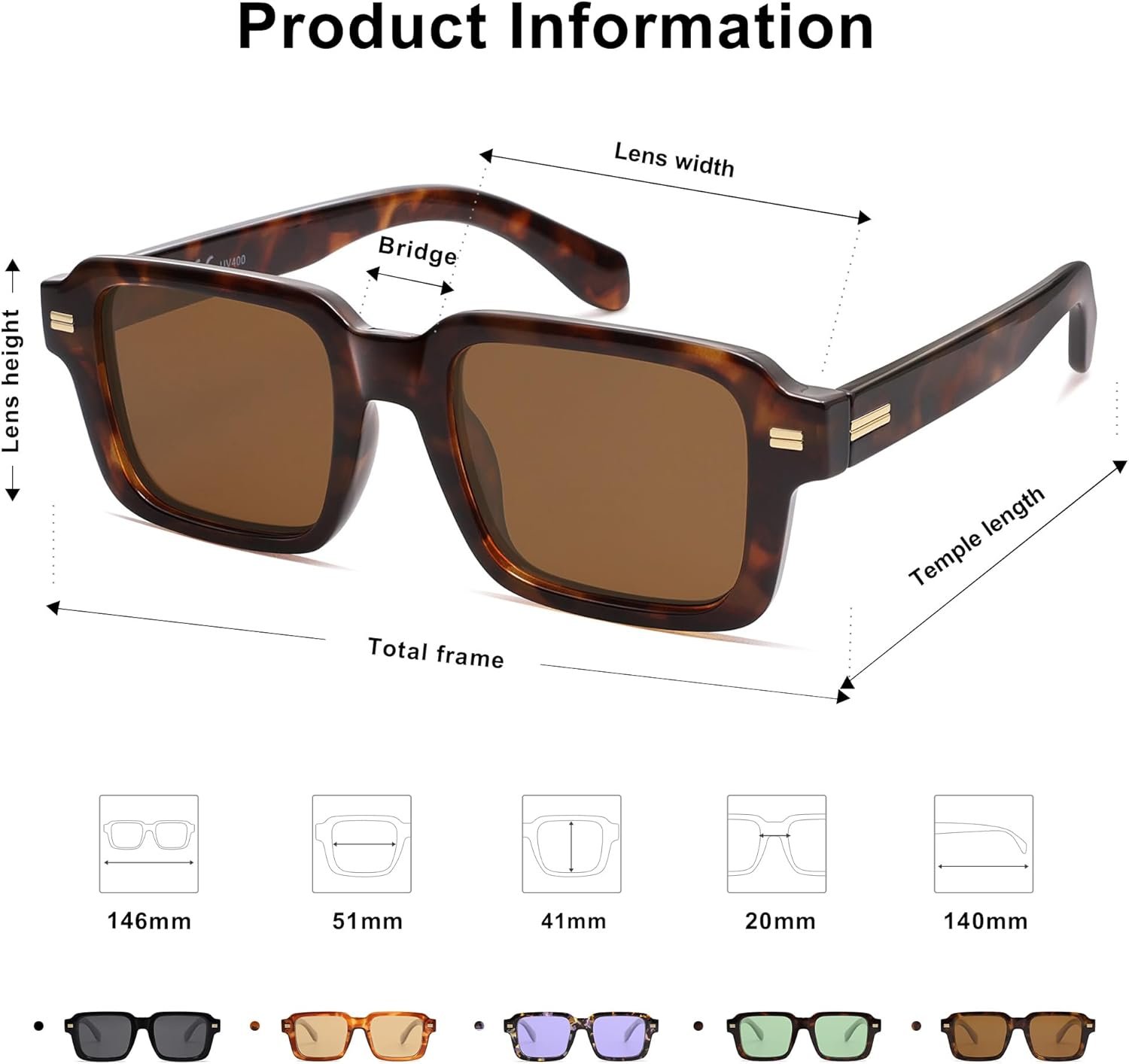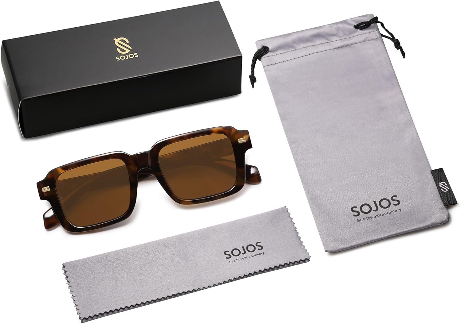 SOJOS Trendy Square Polarized Sunglasses for Women Men, 70s 80s Retro Vintage Rectangle Shades SJ2345