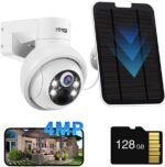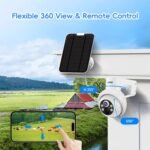 Solar Security Cameras Outdoor, 4MP PTZ Solar Panel for Security Cameras, Battery Powered Wireless Cameras for Home with 128GB Card, PIR Motion Detection, Color Night Vision, Compatible with Alexa
