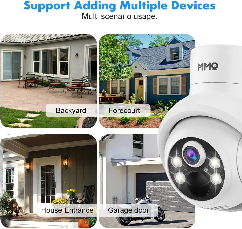 【4MP HD & Color Night Vision】Experience a 50% improvement over 1080P with 2K 4MP (2560x1440P) quality, enabling you to watch and record videos with greater clarity, up to a range of 100FT. Equipped with infrared light and 4 spotlight, wifi camera outside supports black and white IR night vision view and full color night vision view, providing you with HD color images in day or night.