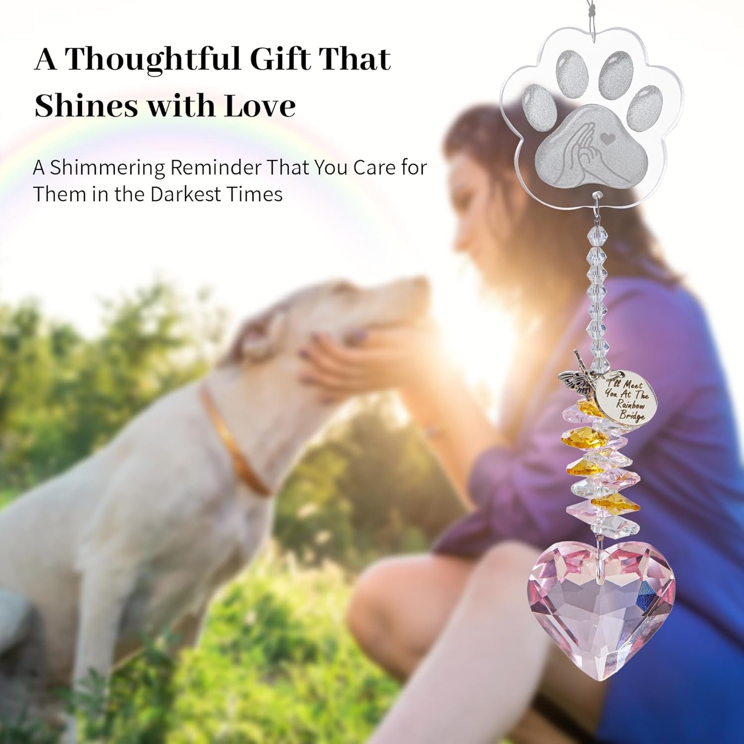 SoulThink® Sympathy Crystal Suncatcher, Dog Memorial Gifts for Loss of Dog, Dog Memorial Paw Engraving & Red Crystal Heart Sun Catchers, Pet Loss Sympathy Gift for Bereavement and Remembrance