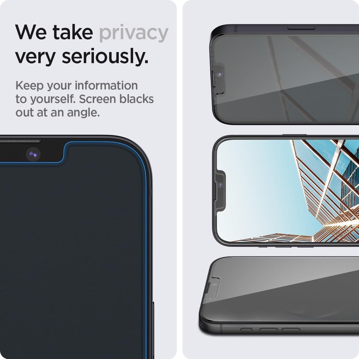 Spigen Tempered Glass Screen Protector [GlasTR EZ FIT – Privacy] Designed for iPhone 16e / iPhone 14 / iPhone 13 Pro/iPhone 13