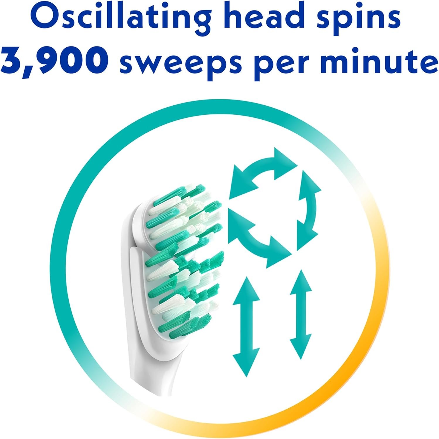 DUAL ACTION BRUSH HEAD features oscillating circle (spinner) and sliding plate (scrubber), moving up to 3,900 sweeps per minute!