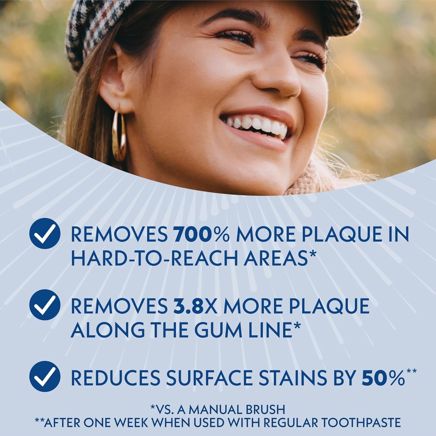 Soft, triple-sided bristles clean deeper between teeth; split-head design moderates the amount of pressure applied, so it’s gentle on teeth and gums