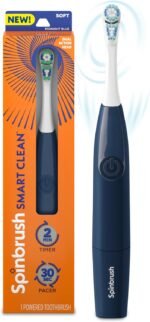 Spinbrush Smart Clean Battery Powered Electric Toothbrush, Soft Bristles, Midnight Blue