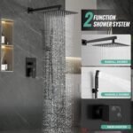 SR SUN RISE Black Square Rainfall Shower Head and Handle Set, Wall Mounted Shower Fixtures, Metal Shower Faucet Trim Repair Kits (With Shower Valve)
