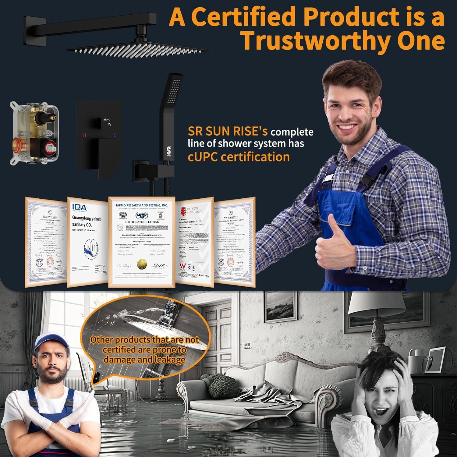 Reliable Support & Certified Safety: Backed by 24/7 customer support, this Rain Shower Head and Handle Set ensures a stress-free experience. It features a cUPC certified pressure balance valve with built-in check valves to monitor water pressure and prevent scalding, approved by the California Energy Commission for standard 1/2-inch US pipe connections.