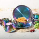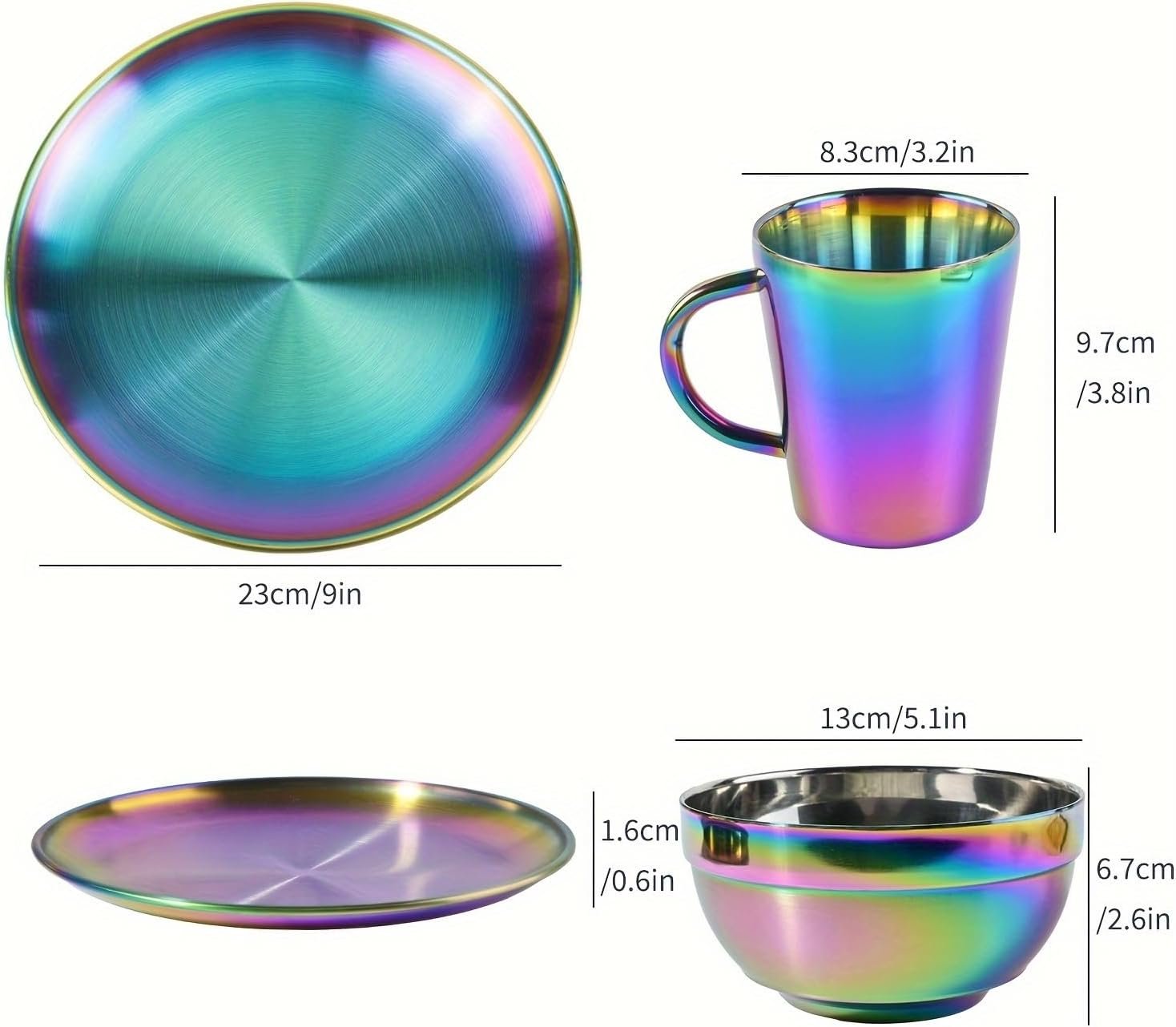 Stainless Steel Dinnerware Set – Plates and Bowls Set With Coffee, Pasta, Kitchen Utensils – KITCHEN AND DINING Essentials- is Dishwasher Safe and Microwave Safe (Rainbow)