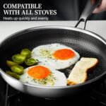【Compatible with All Stoves】The Stainless Steel Frying Pan has 430 high magnetic conductive stainless steel base, works well on induction stove top, gas stove top, electric cooktop, glass stove, ceramic stove. Dishwasher safe and Oven safe up to 480°F