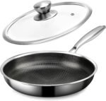 Stainless Steel Frying Pan with Lid – 9.5 Inch Nonstick Frying Pan with Lid, Honeycomb Stainless Steel Skillet Omelet Chef’s Pan with Stay Cool Handle, Induction Compatible, PFOA Free