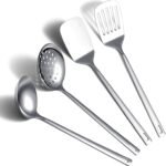 Stainless Steel Kitchen Utensils Set 4 Pieces, Cooking Utensil Set Include Metal Spatula Set, Kitchen Skimmer, Soup Ladle, Kitchen Gadgets Kitchen Essentials New Home Must Have