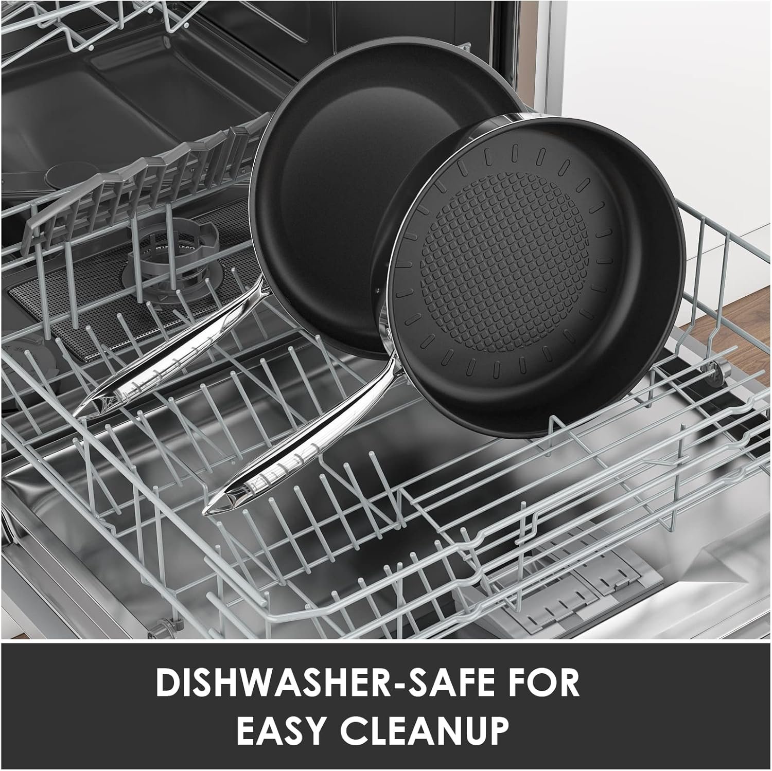 Dishwasher safe: Spend less time to cleanup, put the pan set into the dishwasher for a quick cleaning after finish cooking.