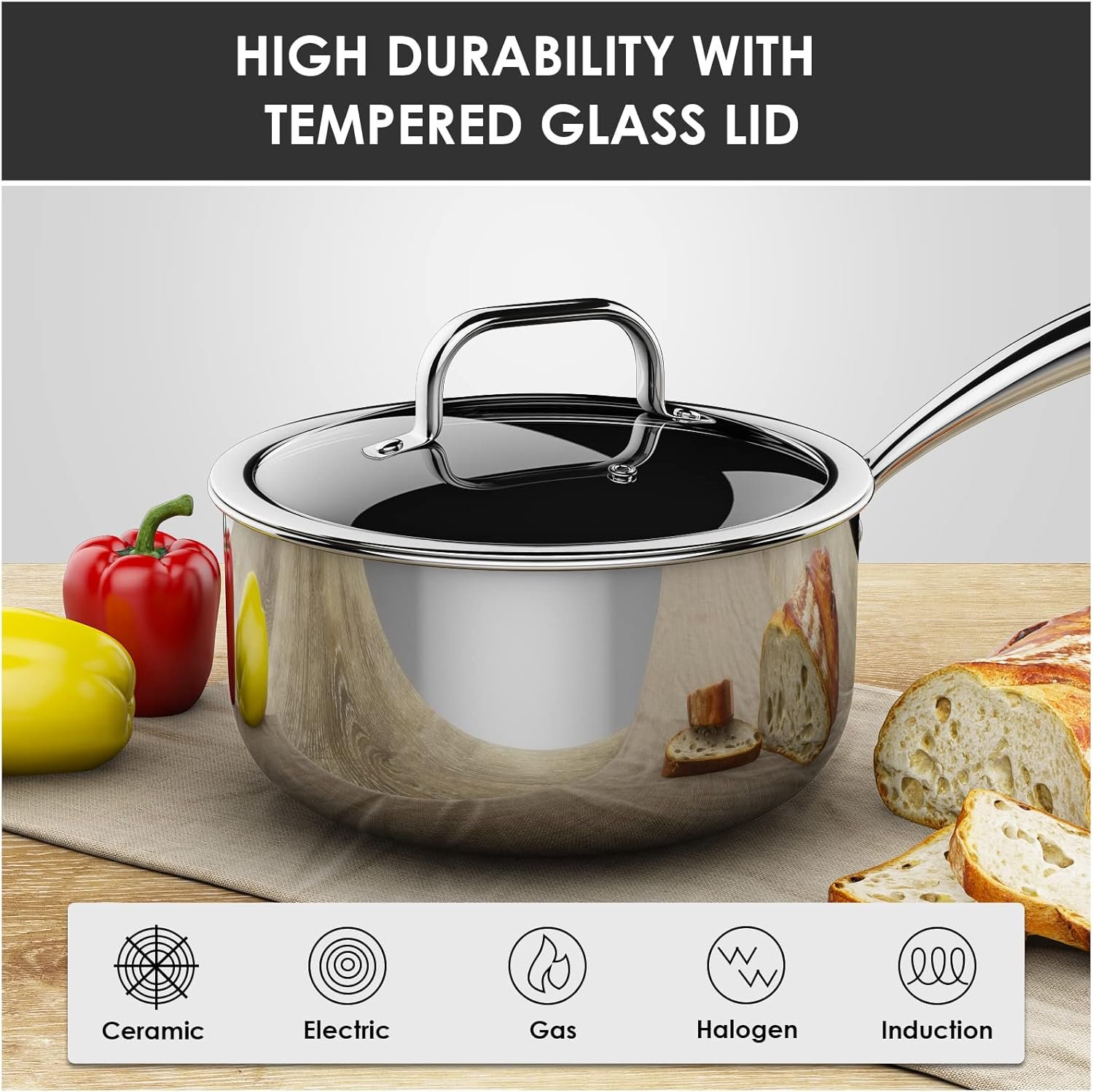 Stainless Steel Pots and Pans Set, Induction Cookware 4-Piece with Lid, Cookware Sets for Oven & Dishwasher Safe By MOMOSTAR