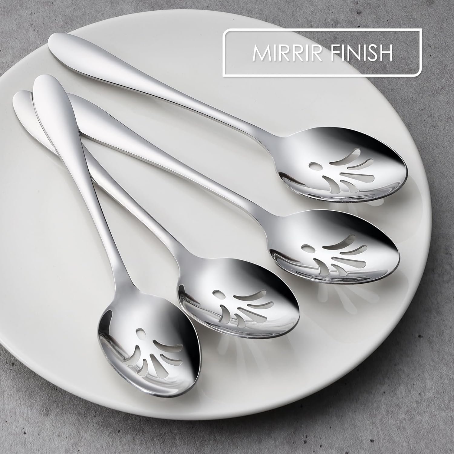 E-far 4-Piece Stainless Steel Slotted Spoons Set is made of pure stainless steel, non toxic and rust resistant, which is healthy and durable for daily use and special events.