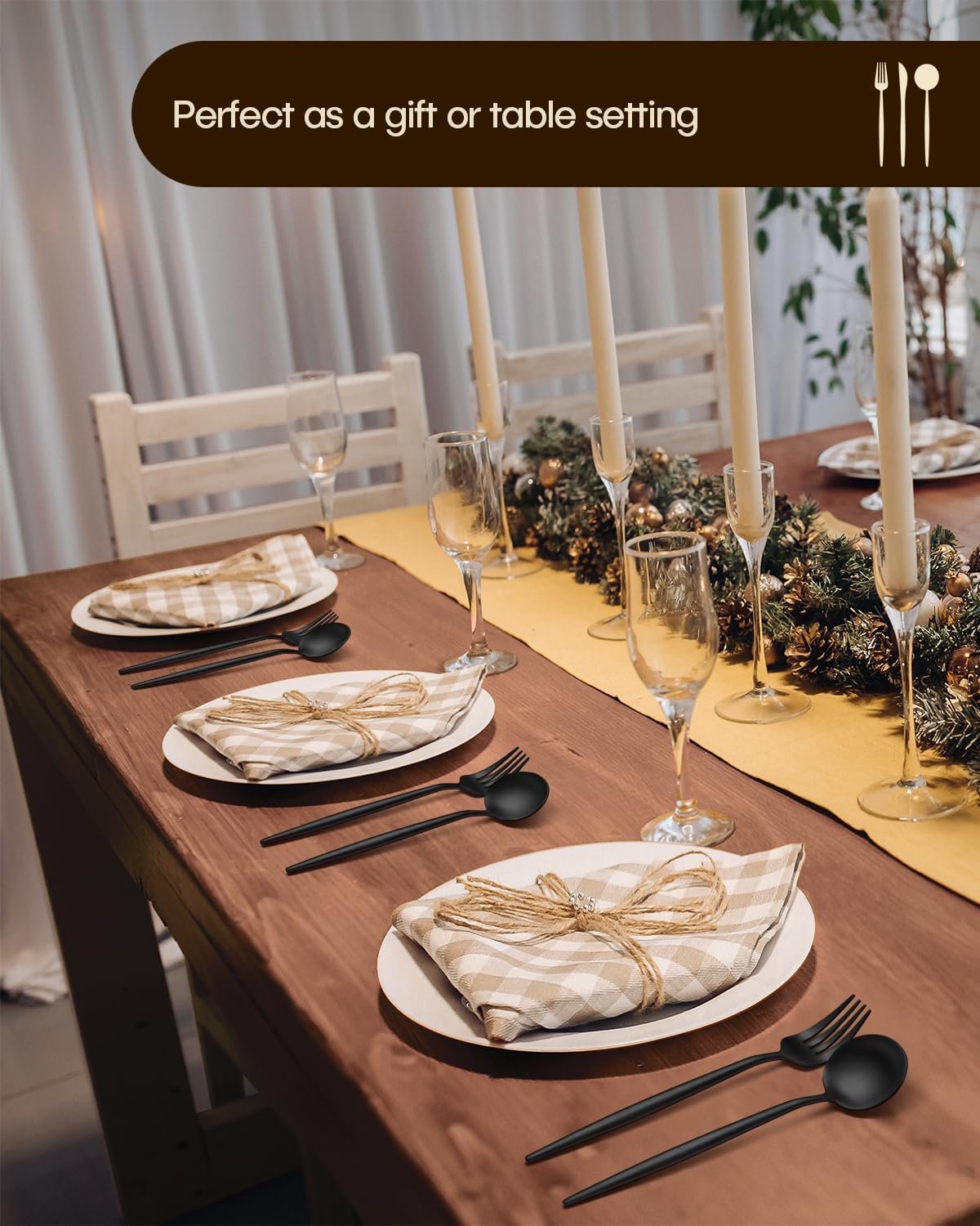 SLEEK AND ELEGANT DESIGN – This black matte silverware set has classic profiles and clean lines, with a distinct sense of design and luxury that can match well with any style you already have. The matte black finish, special shape, and exceptional quality add an elegant touch to any table setting. Perfect gift for your family and friends.