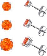 Sterling Silver Stud Earrings for Women- White Gold Plated Opal Earrings Hypoallergenic Small Birthstone Earrings