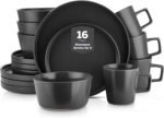 16 Piece dinnerware set – stoneware is hip, cool and trendy. Especially in a fashionable Black Matte. These sets of dishes make a statement.