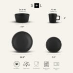 Stone Lain Coupe 32-Piece Stoneware Dish Set, Celina Service for 8, Black Plates and Bowls Dinnerware Set, Dishwasher and Microwave Safe, Black Matte