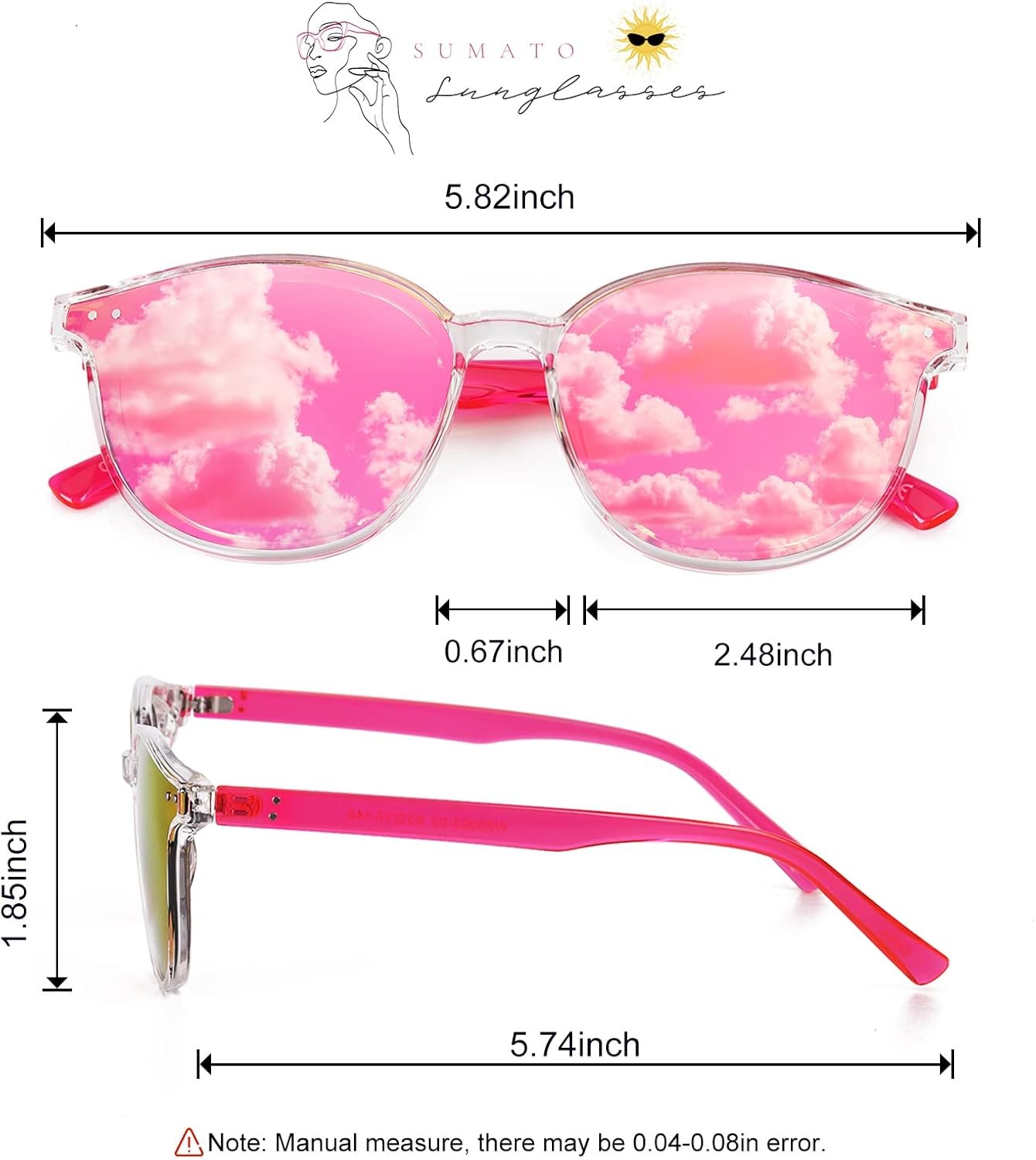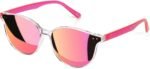 Sumato Sunglasses Womens, Cat Eye Pink Sunglasses for Women with Mirrored Trendy Lens UV400 Blocking