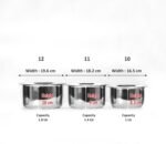 Tope 1:- Size: 10 Dimension – length x width x height (cms): 16.5 x 16.5 x 8.3 Capacity in liters- 1 Weight – 0.3 kgs. Lid – 0.14 kgs Tope 2:- Size: 11 Dimension – length x width x height (cms): 18.2 x 18.2 x 9 Capacity in liters- 1.4 Weight – 0.32 kgs. Lid – 0.16 kgs