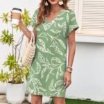 In 2025, make this short-sleeved V-neck knee-length sun dress a must-have in your summer wardrobe.