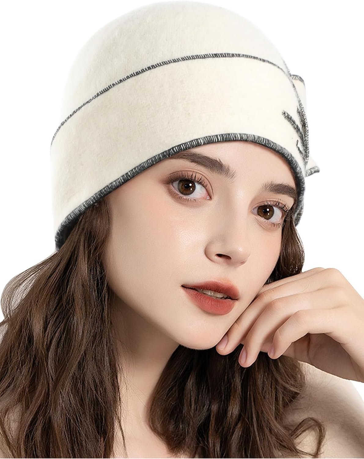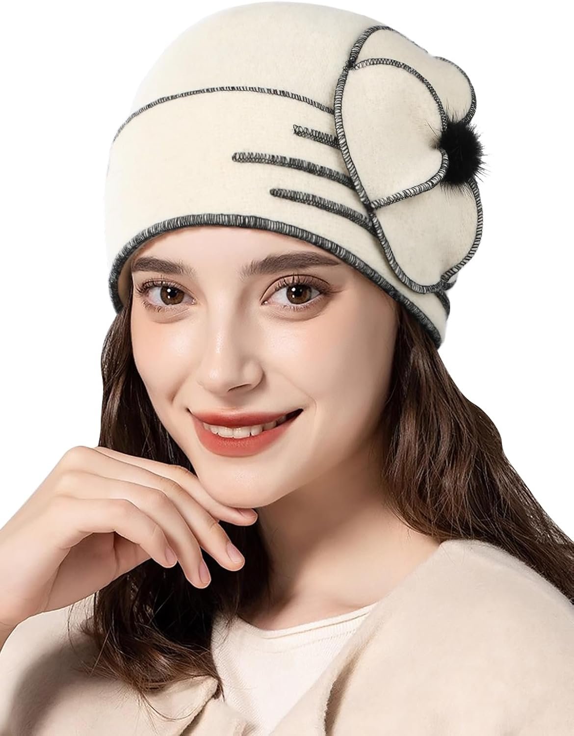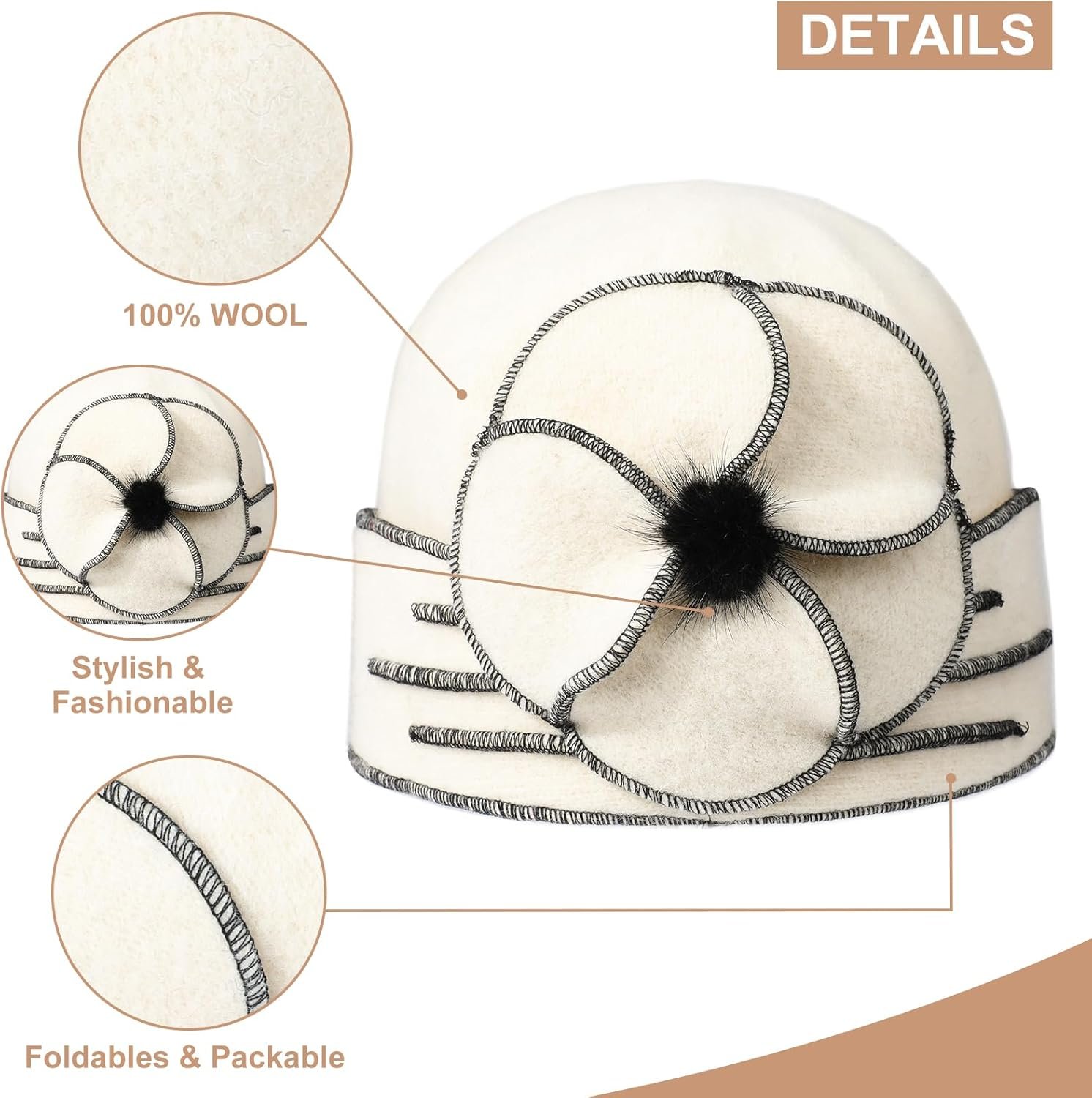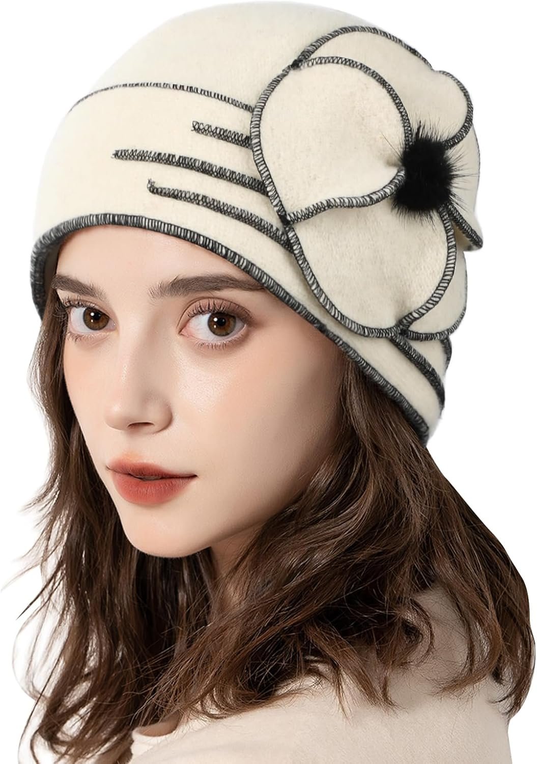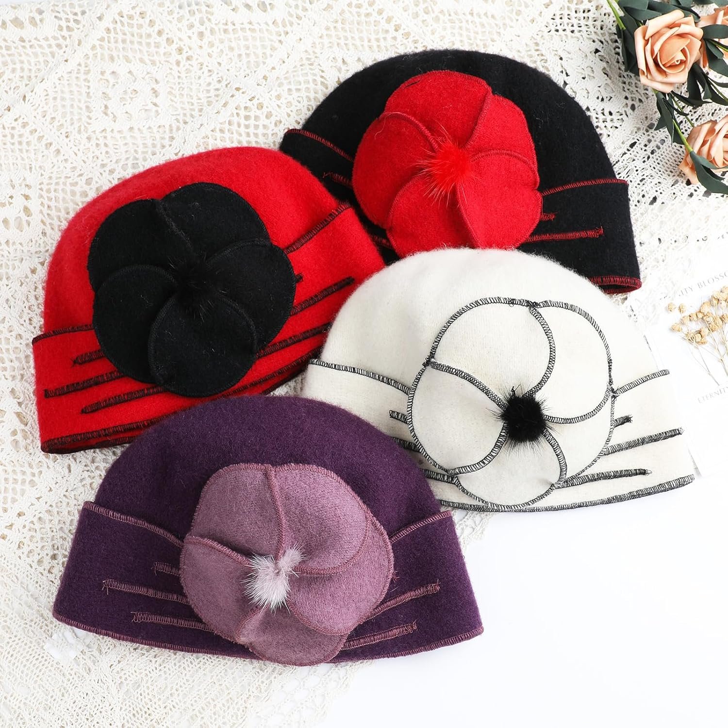 Sumolux Beanie Hats for Women Wool Skull Cap Beret French Vintage Cloche 1920s