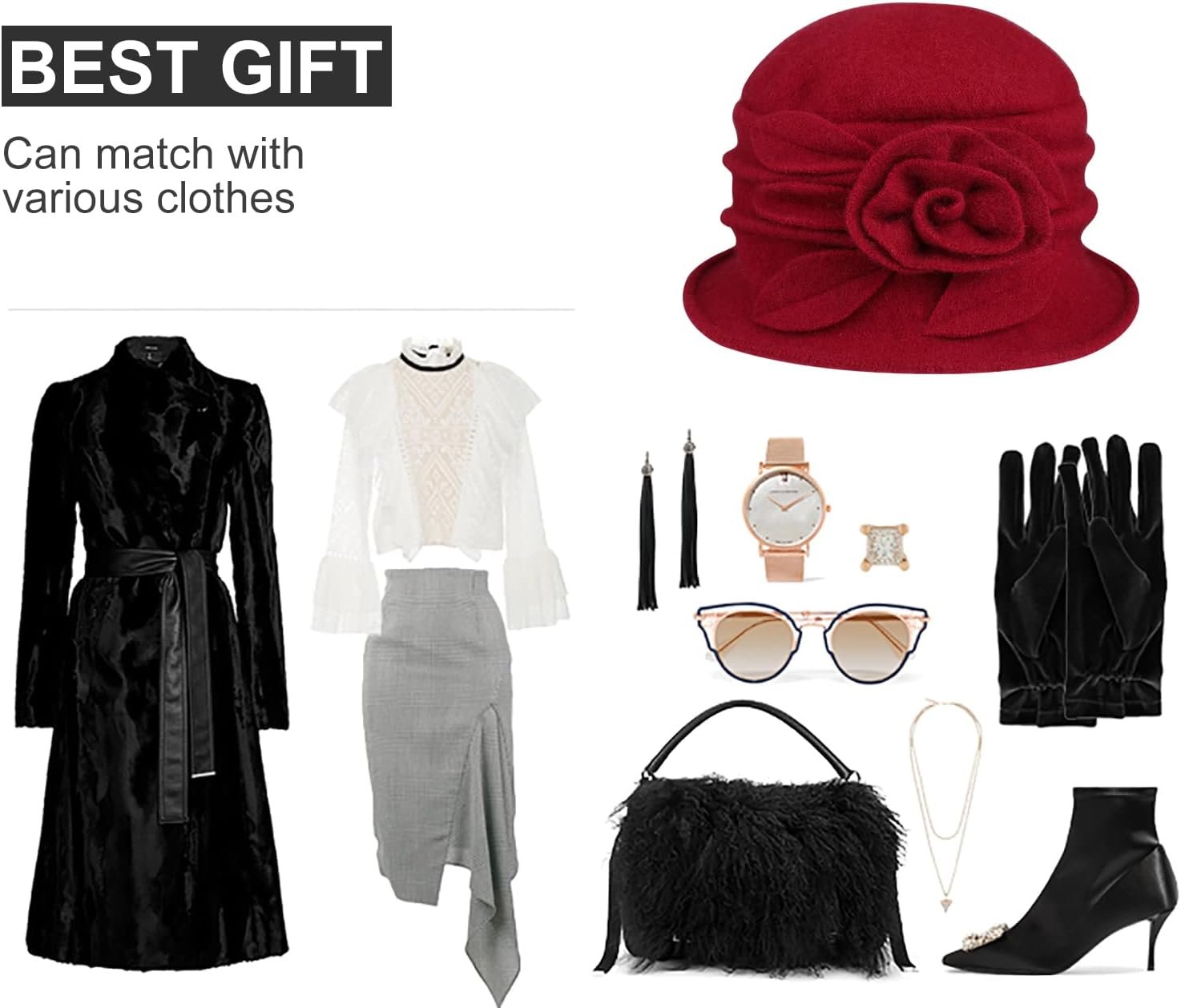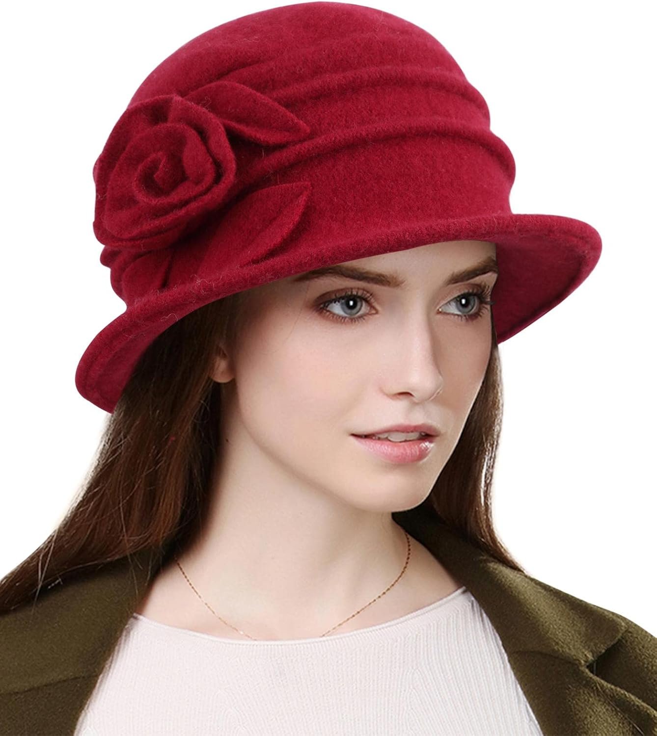 Sumolux Women Beret Hat French Vintage Floral Wool Dress Cloche Classic Winter Hat 1920s