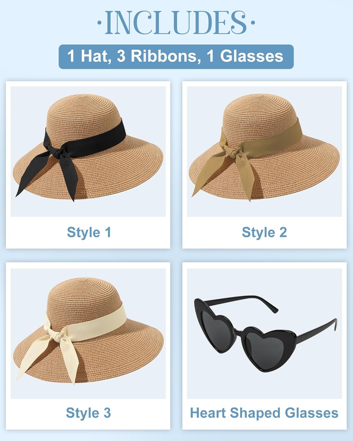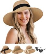 Sun Hats for Women – Oversize Large Straw Beach Hat for Summer Floppy Wide Brim Packable Foldable Roll Up UPF 50+