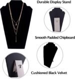 Place them on a revolving jewelry stand to easily display the latest designs at a business, pop up stand, or showroom. Crafted from beautiful black velvet that is soft to the touch and will protect your jewelry from any kind of damage or abrasion. Slightly padded chipboard back for cushioned support. The black velvet surface helps you see products clearly in contrast against bright colored jewelry. Highlights and organizes your most treasured jewelry accessories.