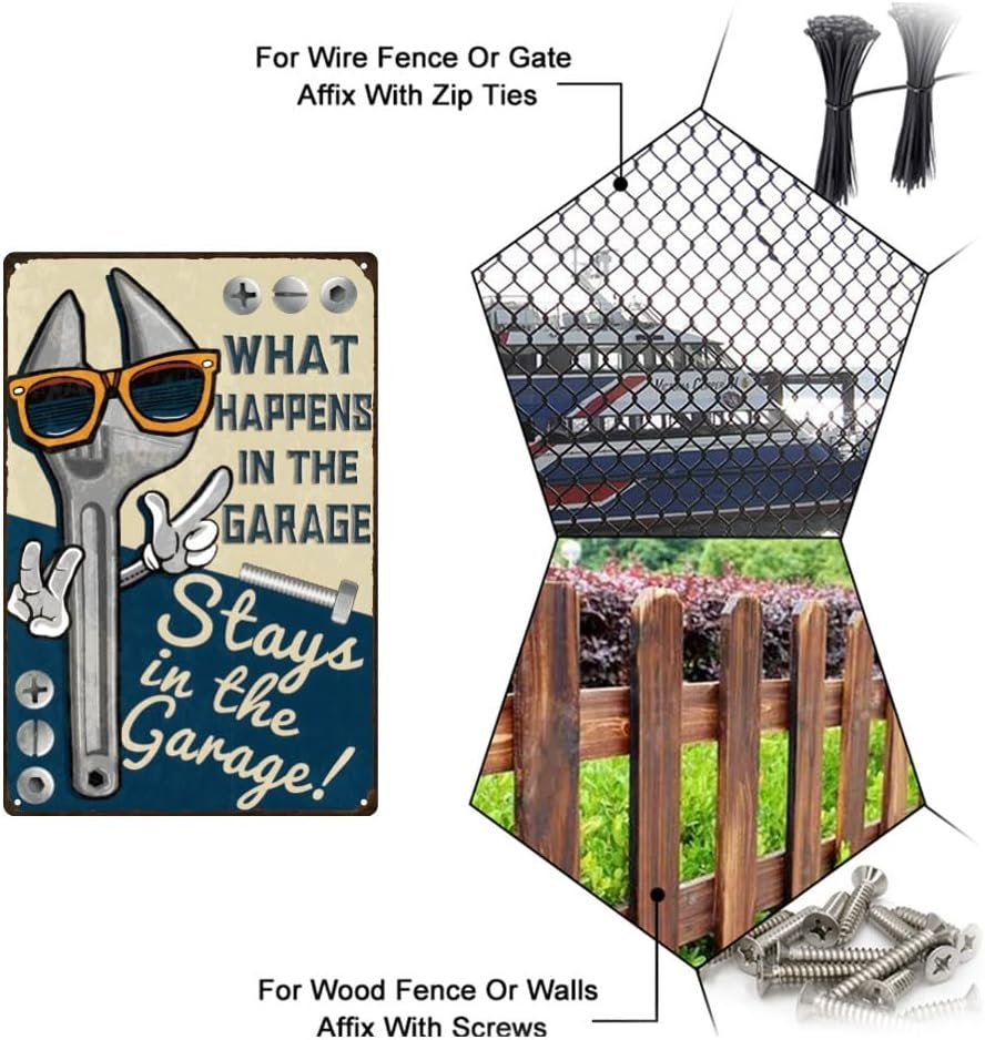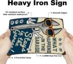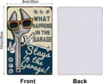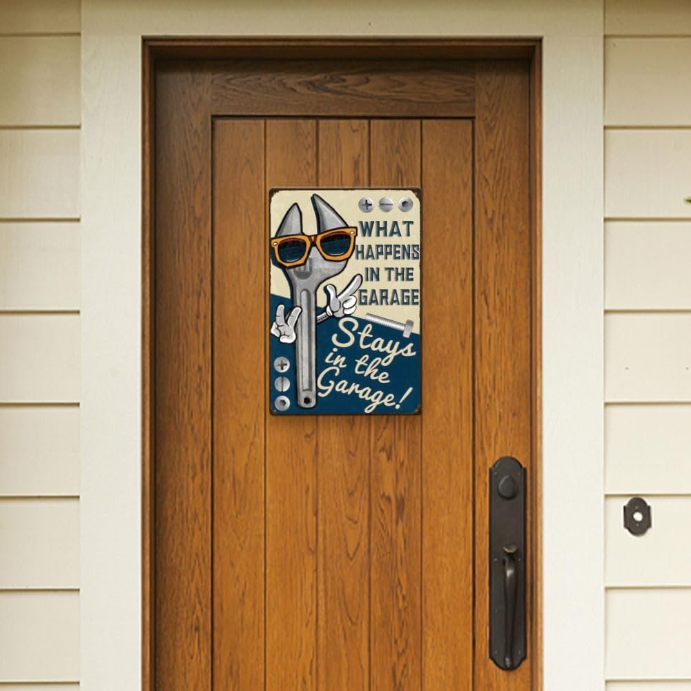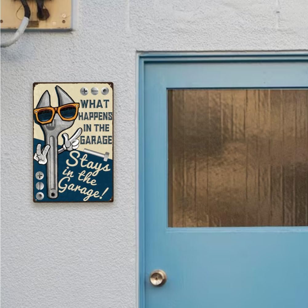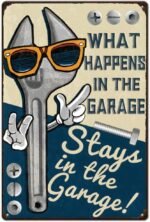 Spanner Themed Design: What happens in the garage stays in the garage.This retro tin sign features a vintage spanner illustration, perfect for adding a touch of industrial charm to your space. Ideal for garages, workshops, man caves, or bars, it’s a great decorative piece for tool enthusiasts and mechanics.