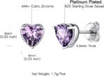 Suplight Dainty 925 Sterling Silver Birthstone Heart Crystal Necklace/Stud Earrings, Minimalist BirthStone Necklaces Earrings Jewelry for Women (with Gift Box)