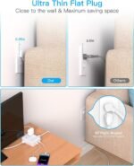 【Ultra Thin Flat Plug Power Strip & Flat Extension Cord】 With only 0.35 inch flat wall plug, this power strip surge protector can infinitely close to the wall, hide in the back of furniture, bed or refrigerator, maximum save you space. The 45° right angle low profile flat plug design keeps anther outlet free. The 5 Ft flat plug extension cord with multiple outlets can be stable on your desktop, nightstand or wall mount, suitable for the home, office, and college dorm room essentials.