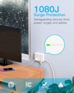 【Multi Safety Protection】- RoHS, ETL Certificates. This multi plug outlets has overload protection, short-circuit protection, over current protection, over-voltage protection and overheating protection. Environmental protection and fire-resistance PC shell with flame retardant at 1382℉ makes it more durable and longer lifetime.