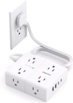 8 AC outlets with 2.2″ long space in between, larger spacing makes it easier to use for all kinds of equipment.