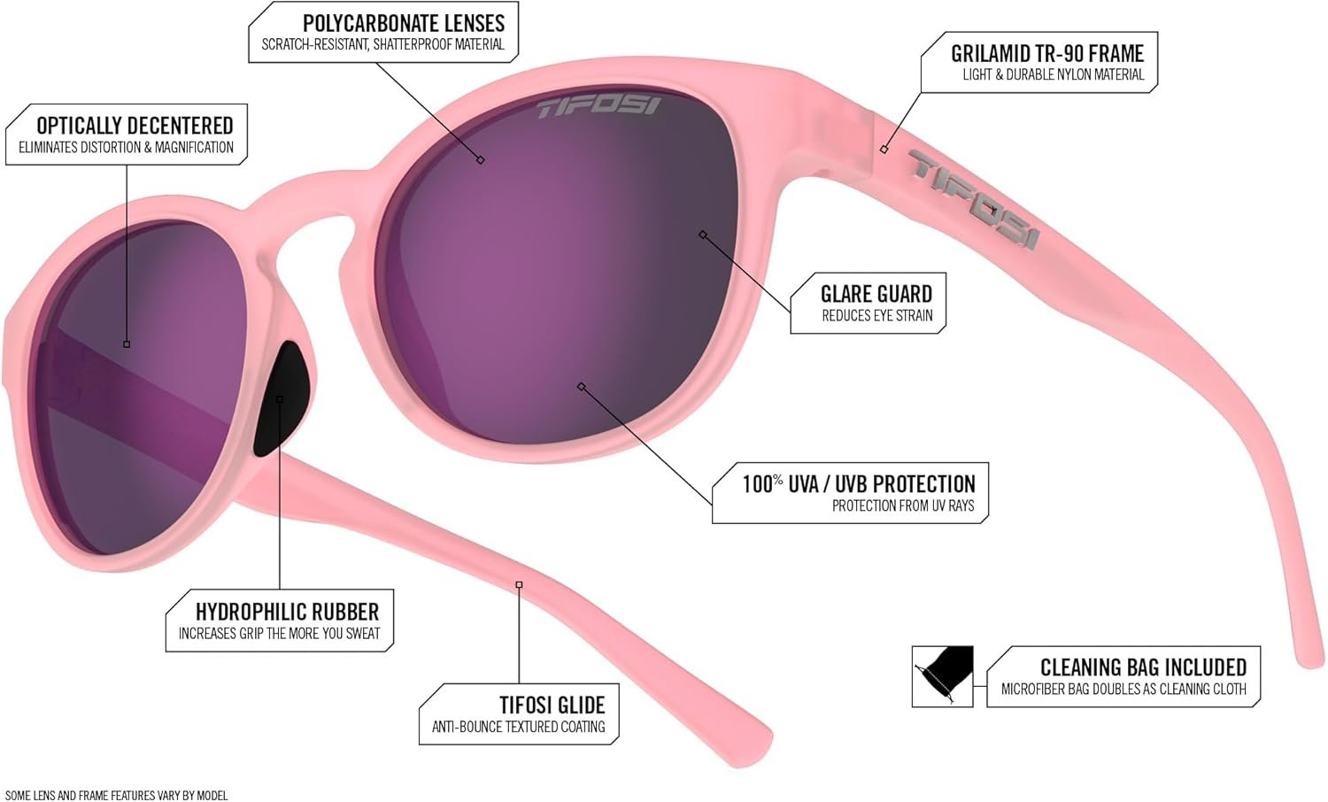 Svago’s sleek round lenses are shatterproof and made of polycarbonate with 100% UV protection.