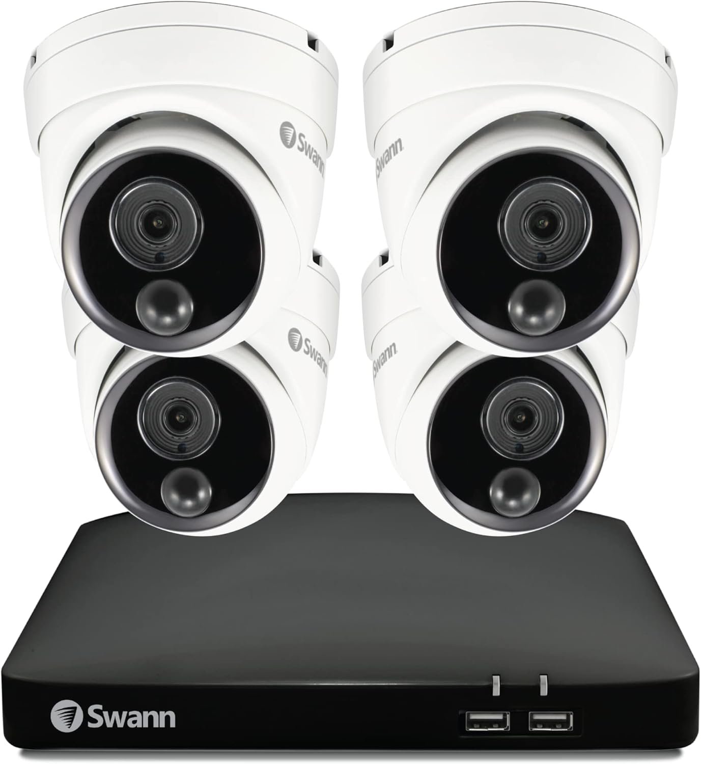 Swann Home DVR Security Camera System with 64GB HDD, 4 Channel 4 Camera, 1080p Full HD Video, Indoor or Outdoor Wired Surveillance CCTV, Heat Motion Detection, 4685