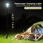 🔧 Telescopic Camping Light with Pro-Grade Adjustability: Elevate your workspace with our telescopic camping light that extends from 2.3FT to 8.4FT – the tallest in its class! Perfect for DIY projects or nighttime basketball games, this led work light with stand delivers 360° shadow-free illumination. Sturdy tripod base stays stable on uneven surfaces like garages or campsites.