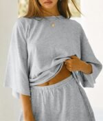 Tankaneo Womens Pajama Sets 3/4 Sleeve Oversized Tops and Elastic Waist Shorts Lounge Sets Loungewear