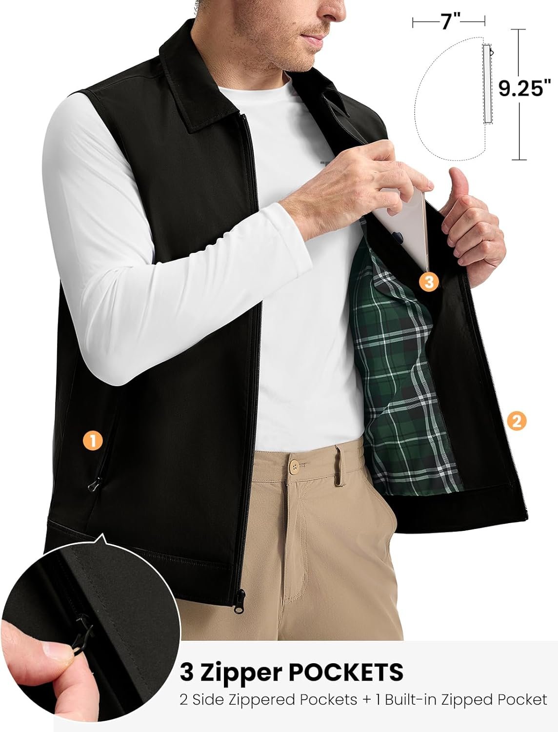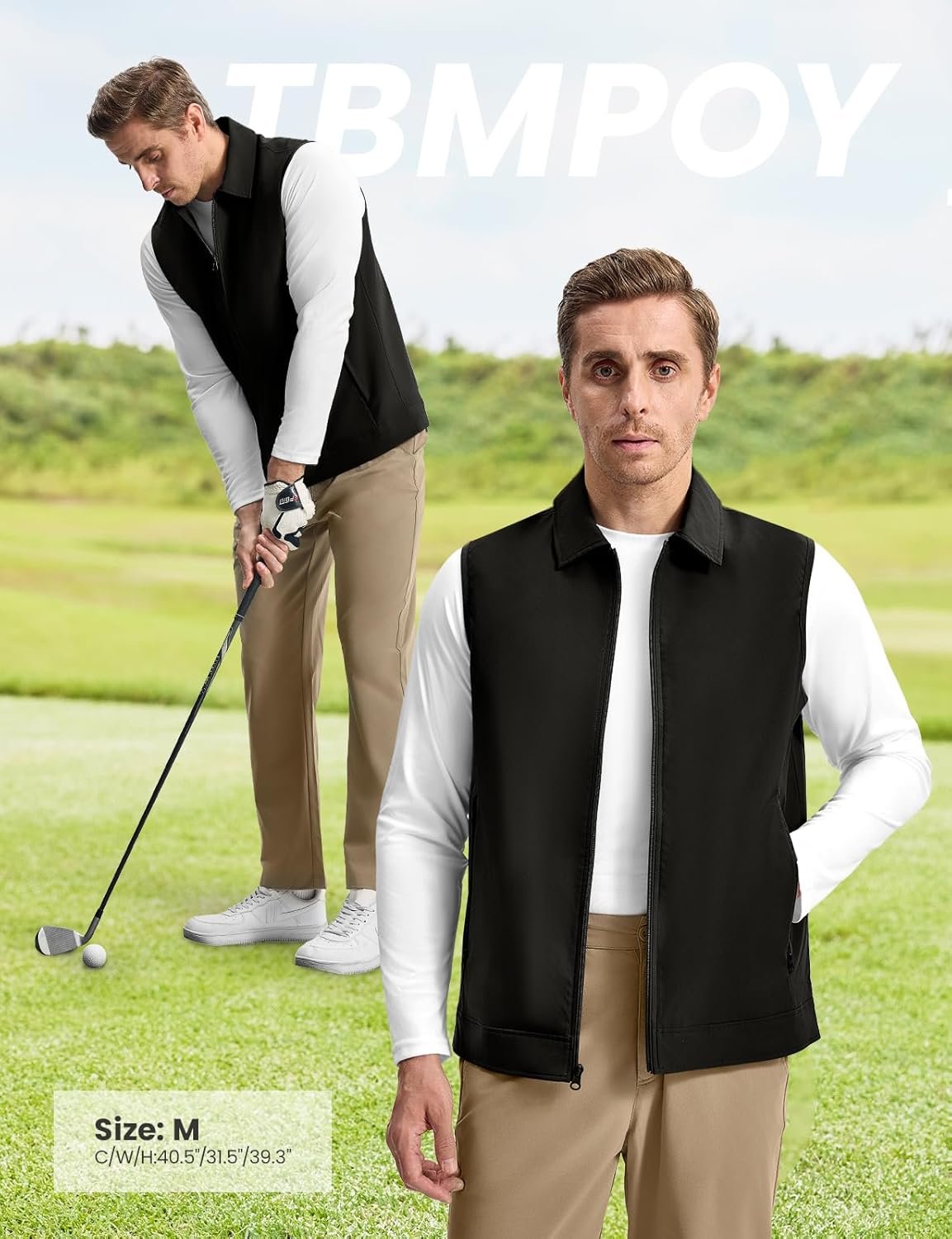TBMPOY Men’s Vest Casual Outerwear Lightweight 3 Zip Pockets Golf Sleeveless Jackets Summer Fall Full Zip Vest Travel