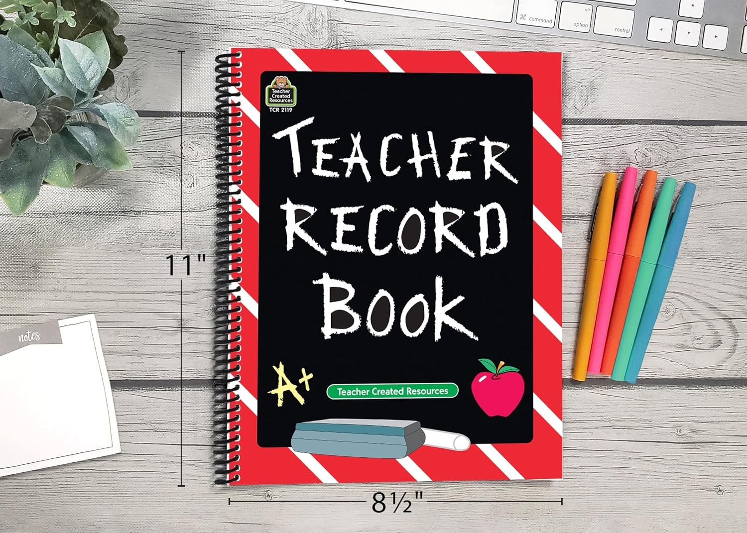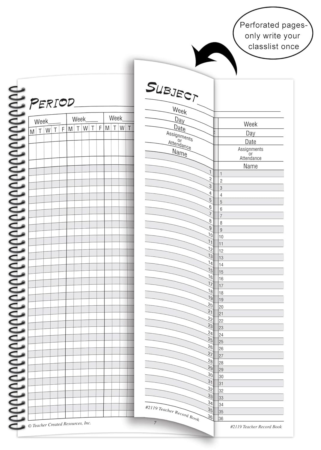 Keep track of everything from attendance to test scores with this teacher record book. Book features plenty of room for writing to provide a convenient way to stay organized. Perforated pages allow one list of student names to be used across several pages of records. Record book is designed for teachers for kindergarten through 12th-grade.