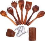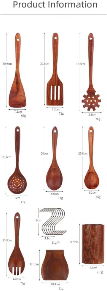 teak kitchen utensils set – Cooking Tools Wooden Kitchen Utensils Cookware Set Wood Kitchen Utensil Set – Wood Utensils for cooking – wooden spoons for cooking + hooks