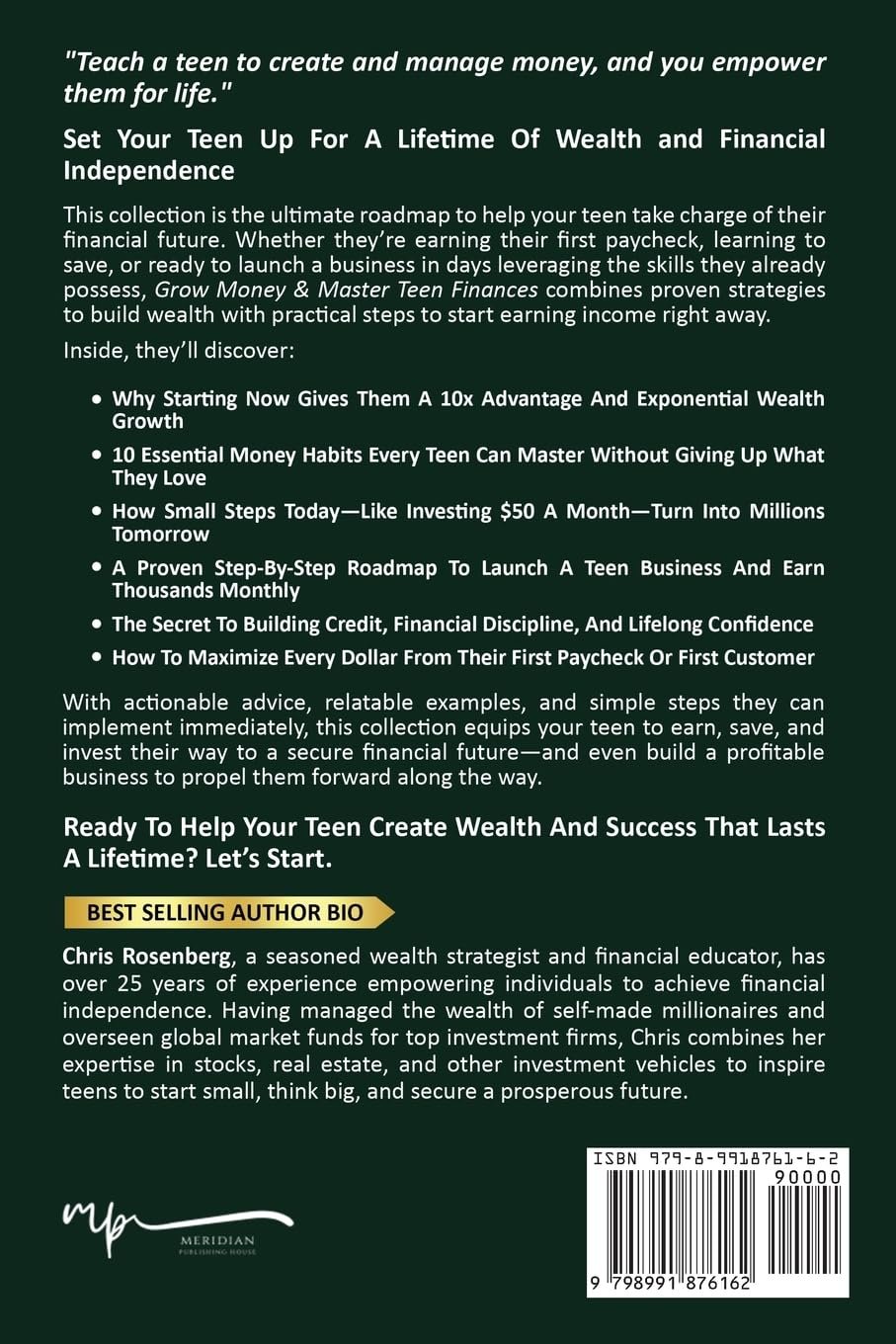 Why Your Teen’s Journey To Financial Success Is About So Much More Than Numbers—It’s About Creating A Life They LoveThe Surprising Truth: Building Wealth Early Shapes Your Teen’s Mindset For Bigger Goals, Stronger Discipline, & Unstoppable GrowthWhy Starting Their Financial Journey Now Gives Your Teen A 10x Advantage Over Those Who Wait Until Their 20s Or 30sA Step-By-Step Action Plan Your Teen Can Implement Today To Earn, Save, & Invest Their Way To Life-Changing Wealth—Laying A Foundation In Just 30 Days That Pays Off For The Next 30 Years10 Essential Money Habits Every Teen Can Master Now To Build Wealth—Without Giving Up Their Favorite ThingsA No-Nonsense Guide To Credit Scores: How Your Teen Can Build A Financial Reputation That Opens Doors For Years To ComeThe Secret To Landing A Part-Time Job Now That Fits Their Schedule & Boosts Their Bank AccountHow To Avoid The Biggest Mistakes Teens Make With Their First Paycheck—& How To Maximize Every Dollar