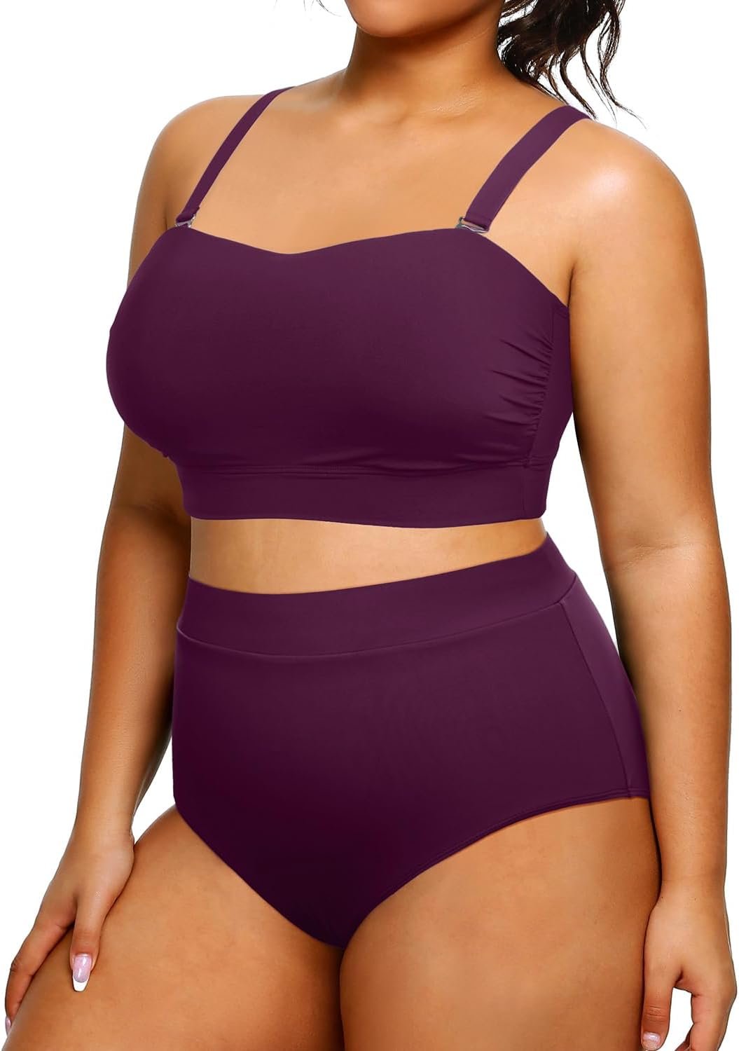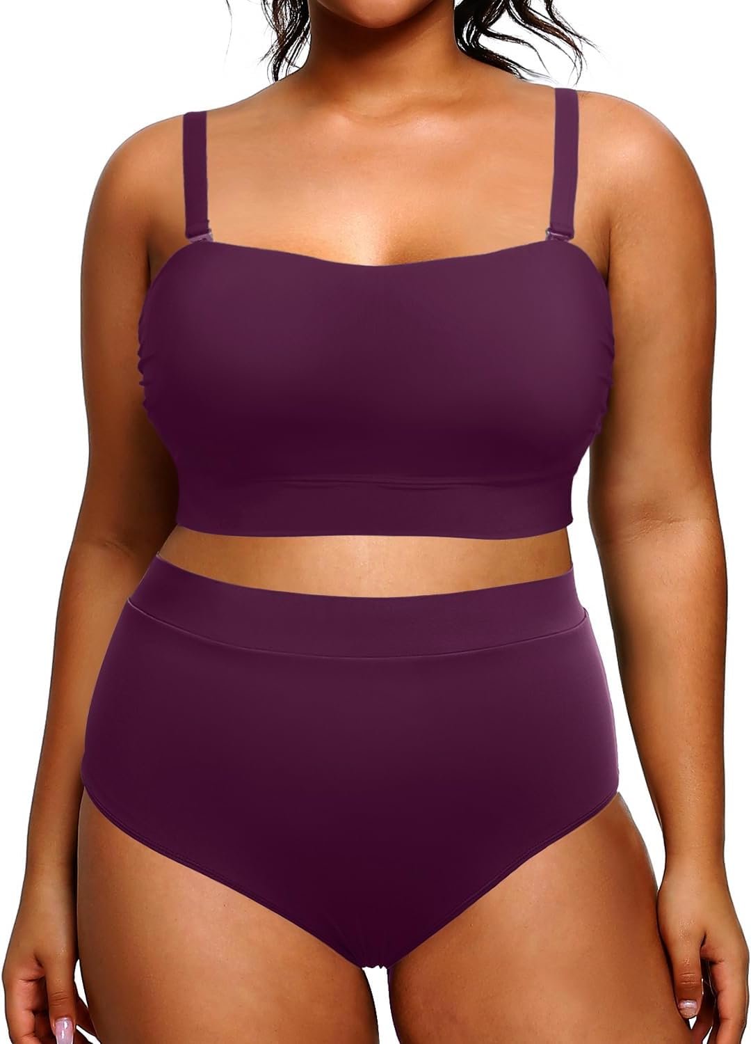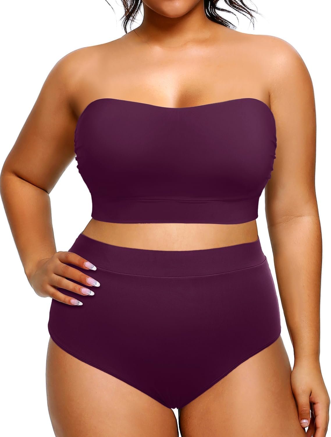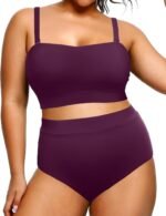 Tempt Me Women Plus Size High Waisted Bikini Bandeau Two Piece Swimsuit