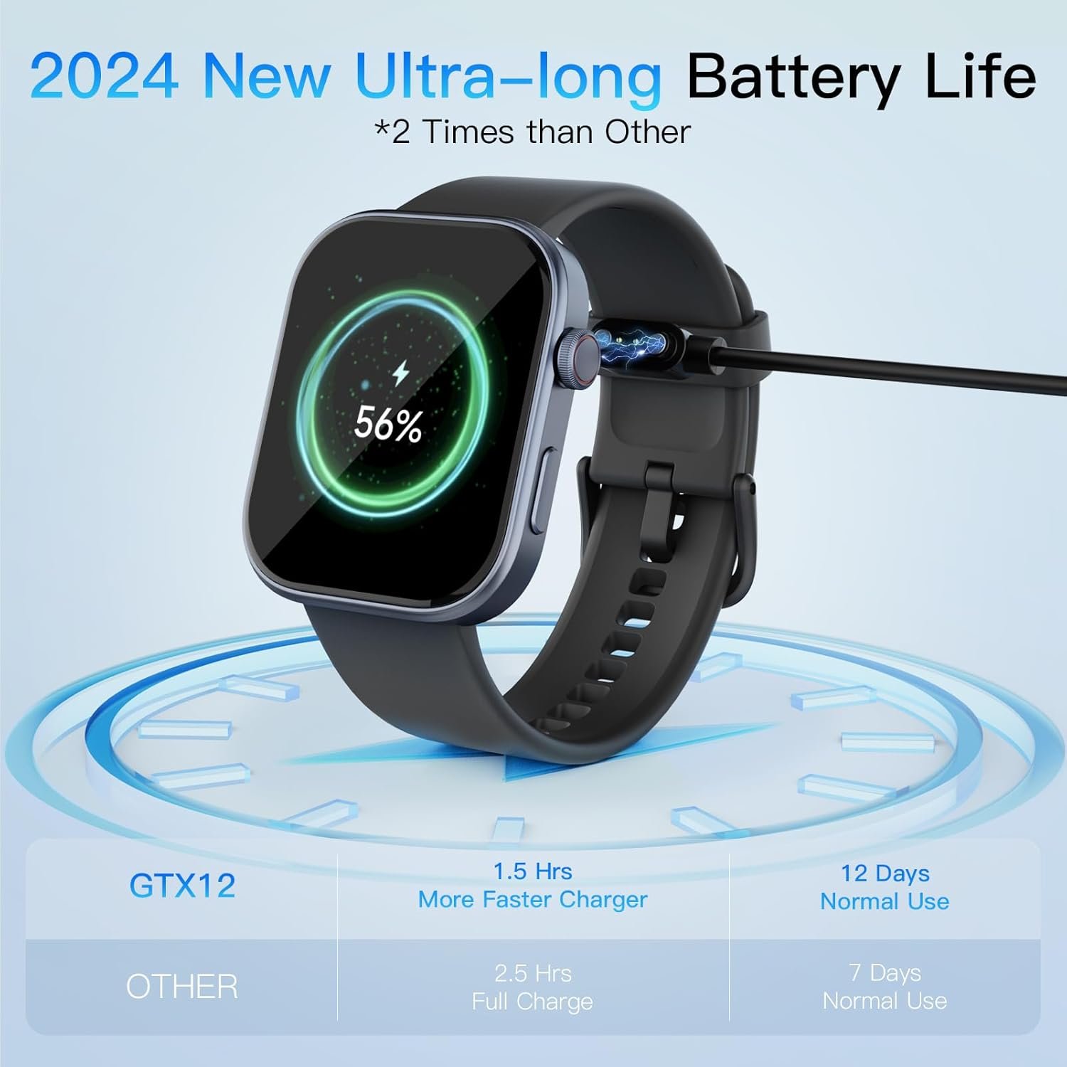 【Long Battery Life and Extensive Compatibility】The pedometer watch is powered by a 350mAh battery, which can be fully charged in just 1.5 hours, and has a battery life of up to 12 days without frequent charging. The Bluetooth watch is compatible with smartphones running IOS10+/Android 6.0+, bringing durable use to meet your health and daily activities. In addition, please contact us at any time. if you encounter any problems.