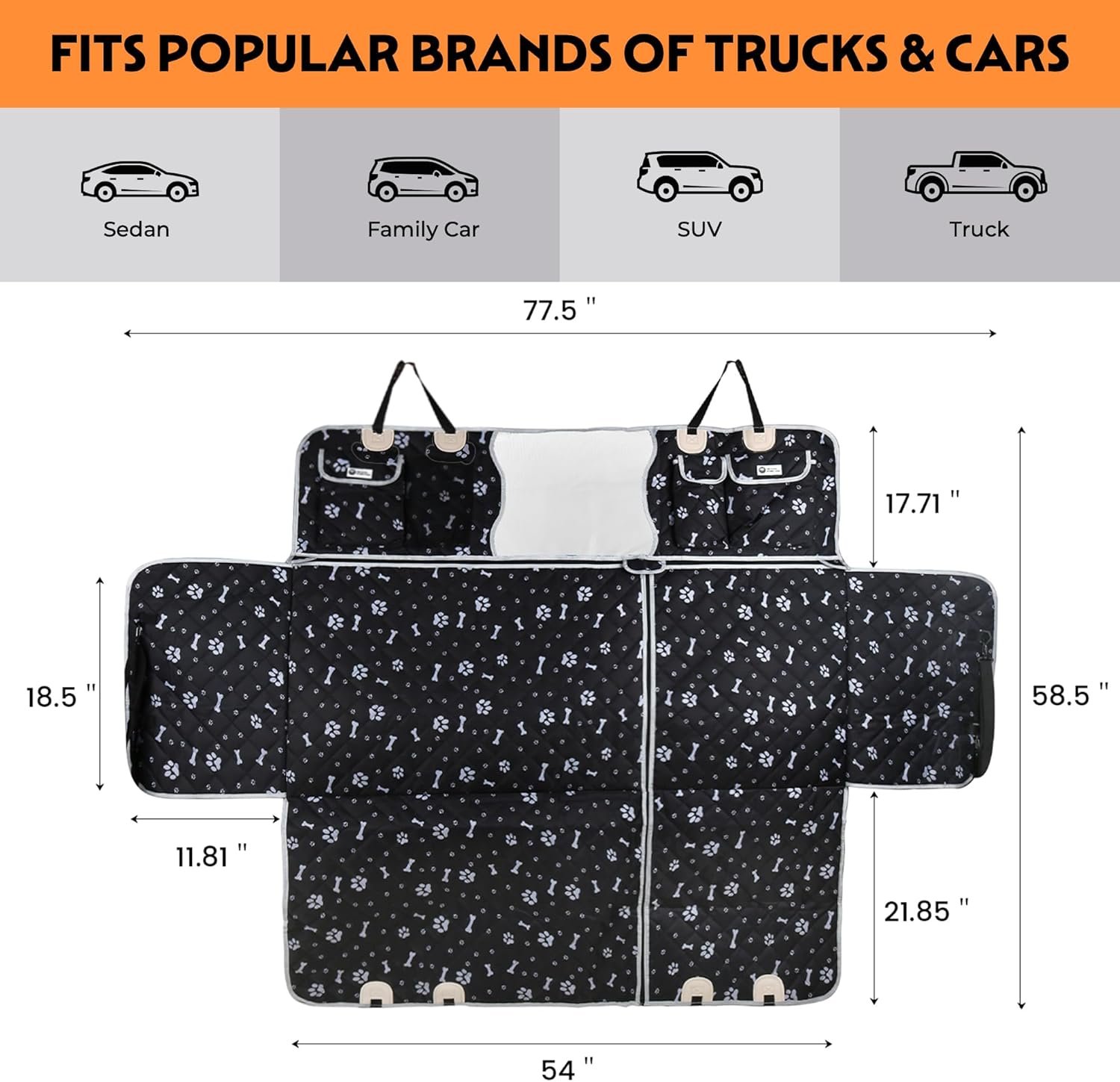 [EASY TO INSTALL & CLEAN] Clip the cover to headrest and use quick-release buckle to remove in seconds; Dog barrier is water-resistant for easy cleaning. Also includes additional storage compartments