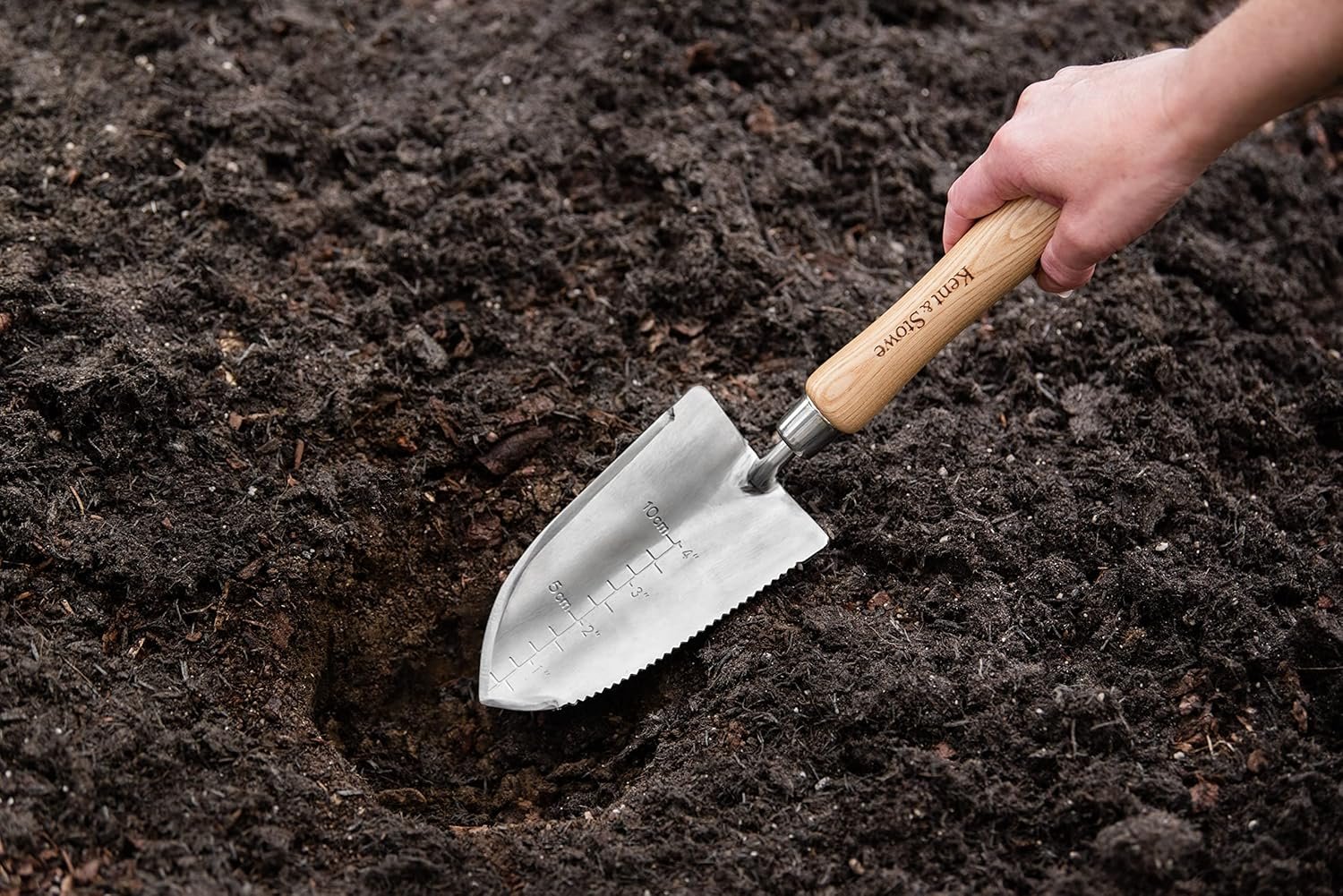 The Capability Trowel has been designed with the belief that in gardening everything could be improved. This trowel has the functionality to endure many gardening tasks. It has a multitude of functions including a hammer for hammering stakes and posts, as well as a serrated edge for weeding, an accurate planting depth scale, excellent rust resistance and minimum soil adhesion, and a hanging loop. The handle is made from ash wood and contoured for a perfect comfortable grip, the blade and head are made of high-quality stainless steel. This is the only trowel you will ever need.