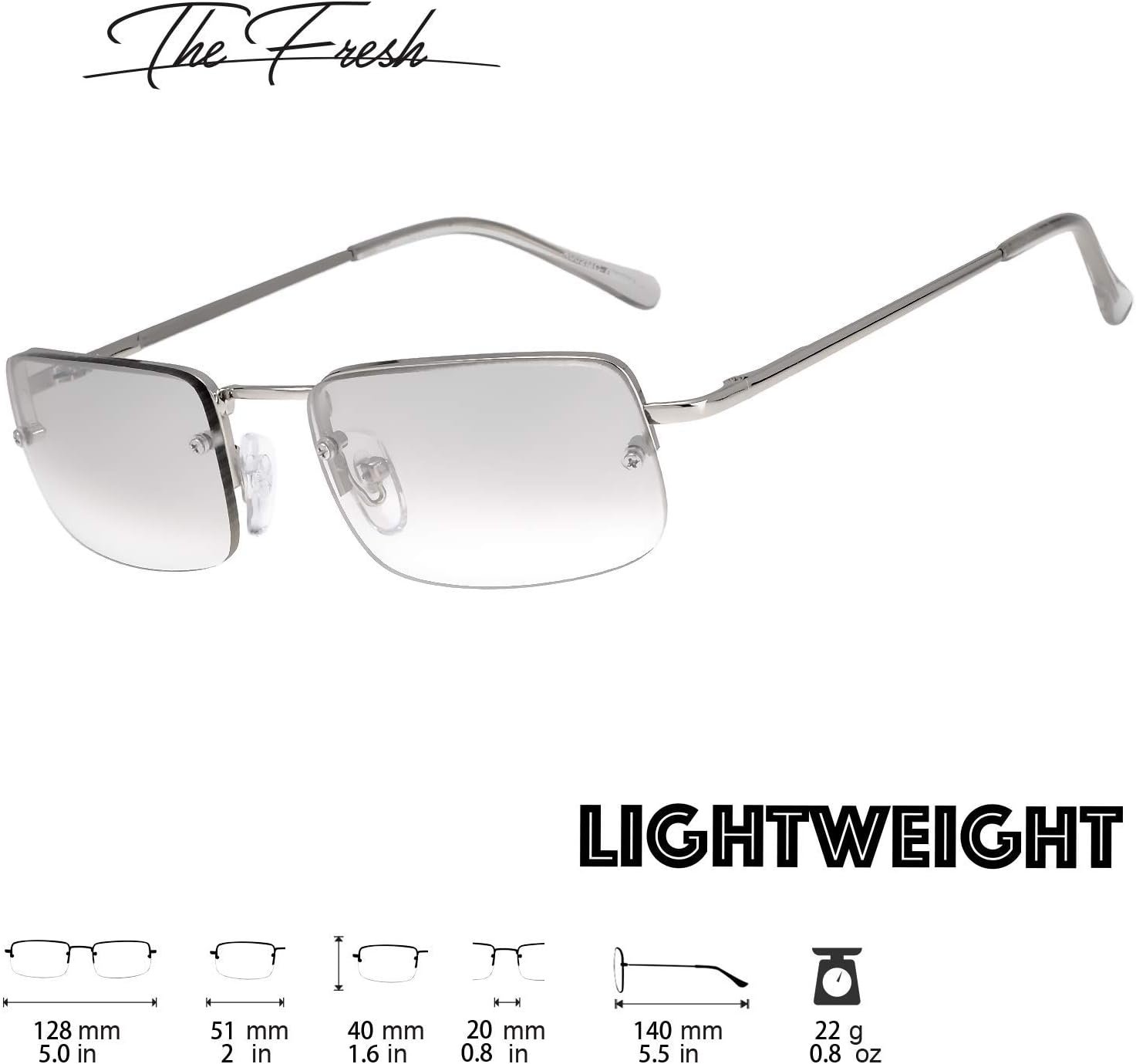 The Fresh Minimalist Small Rectangular Sunglasses Clear Eyewear Spring Hinge – Gift Box Package – FR1M4002MC01 (Silver, Gradient Clear, 51)
