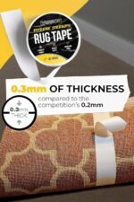 Customers find the rug tape works well on large area rugs and appreciate its strong adhesion and ease of application. The tape’s stickiness receives mixed feedback – while some say it sticks beautifully to the floor, others report it doesn’t adhere well to the back. Durability is also mixed, with some saying it holds up well to foot traffic while others find it not very strong. Removal experiences vary, with some finding it easy to remove while others say it’s very hard to remove. Value for money opinions are divided, with some considering it a good purchase while others say it’s not worth the cost.