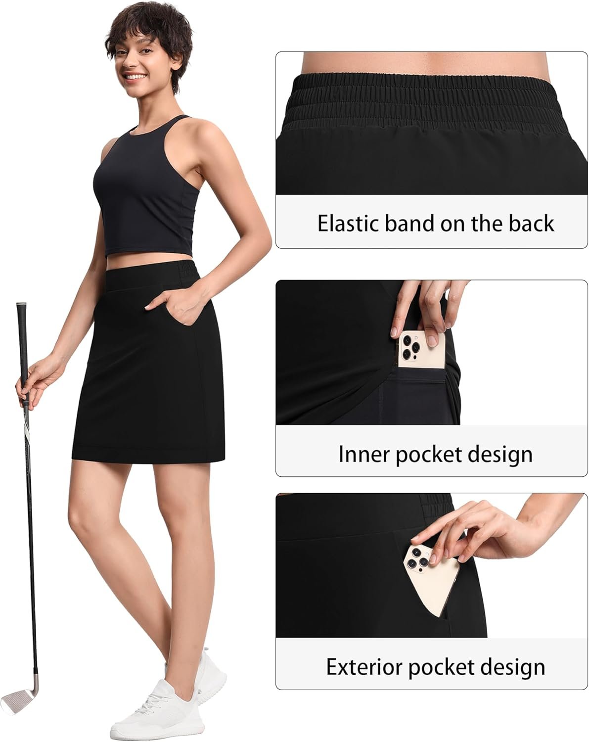 THE GYM PEOPLE Women’s Golf Skorts Modest Knee Length Athletic Tennis Skirts Built-in Shorts with 4 Pockets